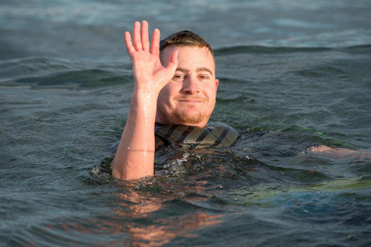 - 300m Entfernt vom Ufer stopt der Driver das Boot und der erste Rider macht sich bereit.